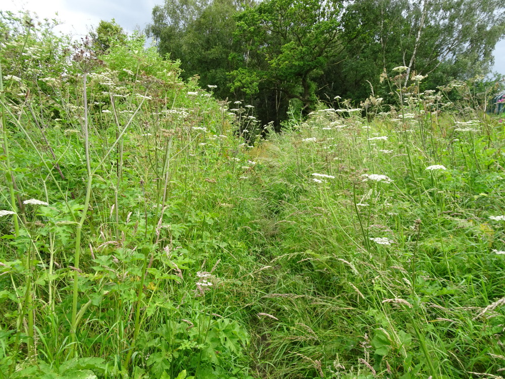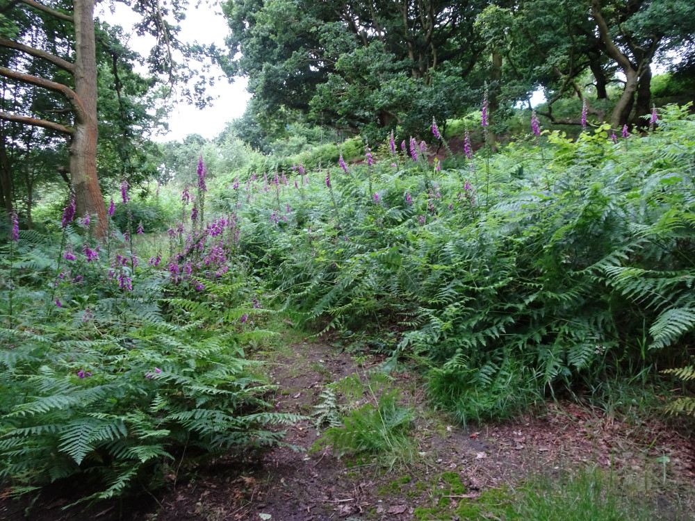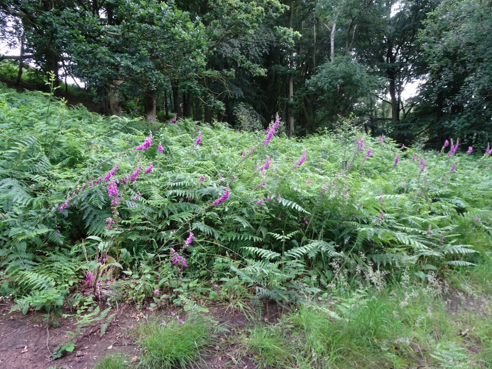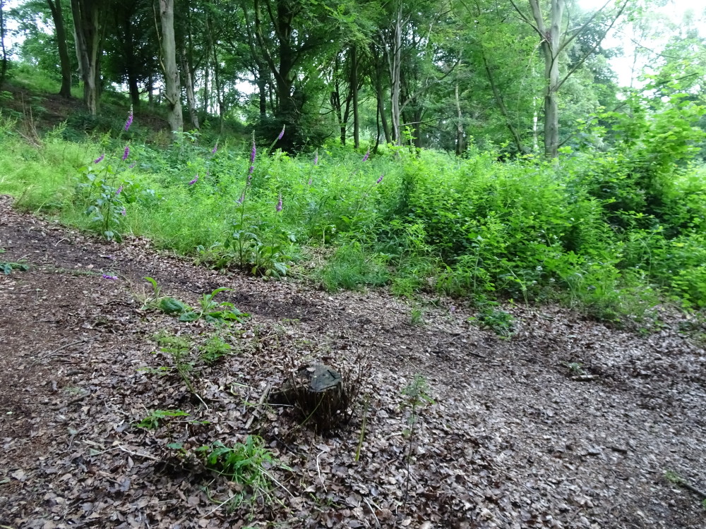 By the end of May, depending on what the weather has been like during the spring, the Bluebells have passed their best and start to fall. At the same time the perennial weeds take over and within a week, the nettles and ferns outgrow the Bluebells and transform the Barff into its summer foliage. Towards the end of July the trees are in full leaf, the ferns, nettles and grasses have shot up and in places reach heights of 5 ft. Rosebay Willow herb, Himalayan Balsam, Foxgloves are in full flower and reach heights well over 6ft. Brambles and their briers must grow about 6inches a day, resulting in many of the side footpaths being unpassable and over grown. The grassland on the top of Tap Hill is quite a picture at this time of year and resembles a wildlife meadow with Clover, Creeping Buttercups, Selfheal, Ragwort, Lesser Burdock and Knapweed. If you have keen eyesight look out for the Bee Orchids and Common Orchid. So after the Bluebells there is still lots to see.