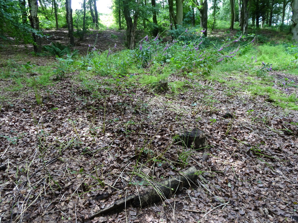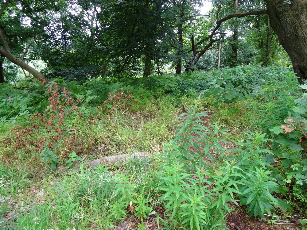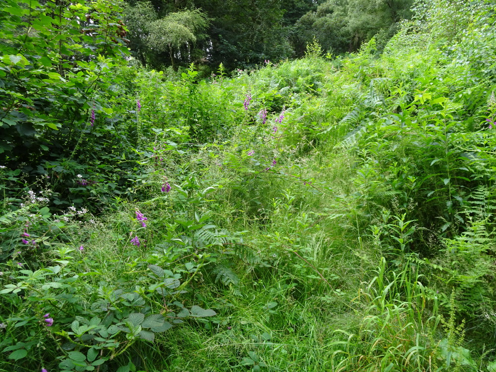 By the end of May, depending on what the weather has been like during the spring, the Bluebells have passed their best and start to fall. At the same time the perennial weeds take over and within a week, the nettles and ferns outgrow the Bluebells and transform the Barff into its summer foliage. Towards the end of July the trees are in full leaf, the ferns, nettles and grasses have shot up and in places reach heights of 5 ft. Rosebay Willow herb, Himalayan Balsam, Foxgloves are in full flower and reach heights well over 6ft. Brambles and their briers must grow about 6inches a day, resulting in many of the side footpaths being unpassable and over grown. The grassland on the top of Tap Hill is quite a picture at this time of year and resembles a wildlife meadow with Clover, Creeping Buttercups, Selfheal, Ragwort, Lesser Burdock and Knapweed. If you have keen eyesight look out for the Bee Orchids and Common Orchid. So after the Bluebells there is still lots to see.