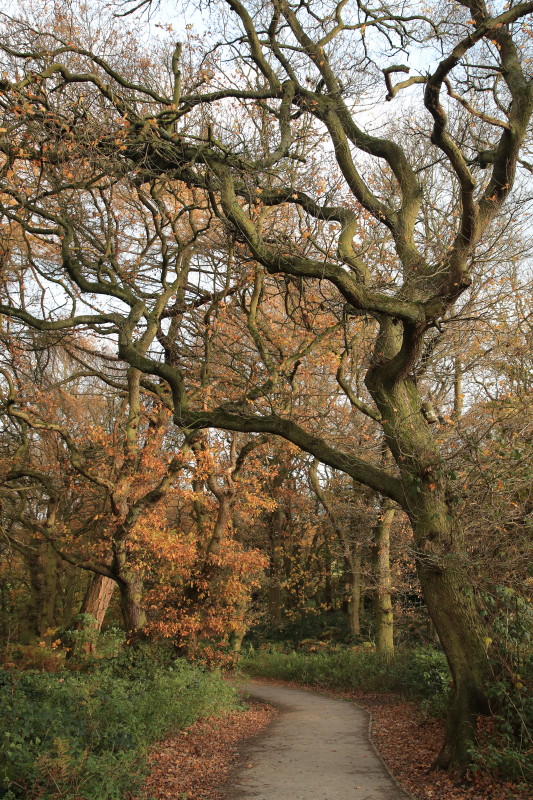After breakfast it was back to work as I continued writing and editing some pictures for a book that I’m putting together on the Gardone Riveara, I cannot believe it was twelve weeks ago since we were there, where has that time gone? As lunch time approached, the sun was shining outside, there was a lovely blue sky and I needed a break from the computer so before lunch decided to take M & G for another walk onto the Barff with the camera. The Autumnal colours have been quite stunning of late and this last couple of weeks have been at their best. Needless to say that by the time we arrived the sun had disappeared behind the cloud and the sky had turned grey! Fortunately after about thirty minutes the sun had burnt off the cloud and we had a really pleasant walk. The Nuthatches were busy calling to each other in several places around the woodland, Chaffinches and Robins appeared to be everywhere, the chaffinches quite noticeable by the two white flashes on their sides and the Robins because they are quite cheeky and inquisitive and seem to follow me no matter where I am on the Barff. It was good to hear the Dunnocks singing their heads off, I love watching and listening this little bird, I see them mainly at the reserve at Fairburn but it was good to see them here in the mid-morning light. I could hear several Goldcrests today too, needless to say I had difficulty spotting them which is made a little harder as I had the dogs with me. After about ninety minutes we headed for home and lunch. It was a beautiful walk especially in the sunshine and the added bonus of the Autumnal colours.