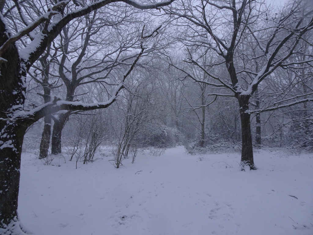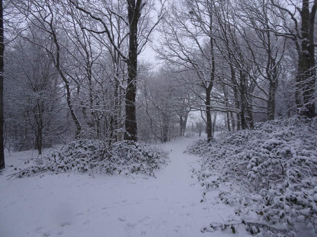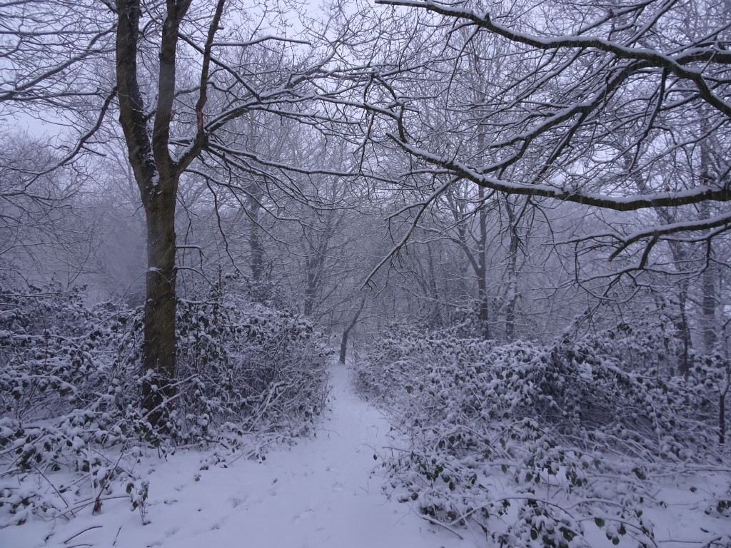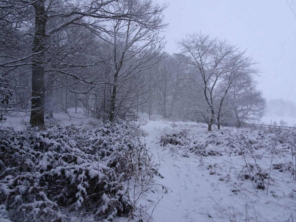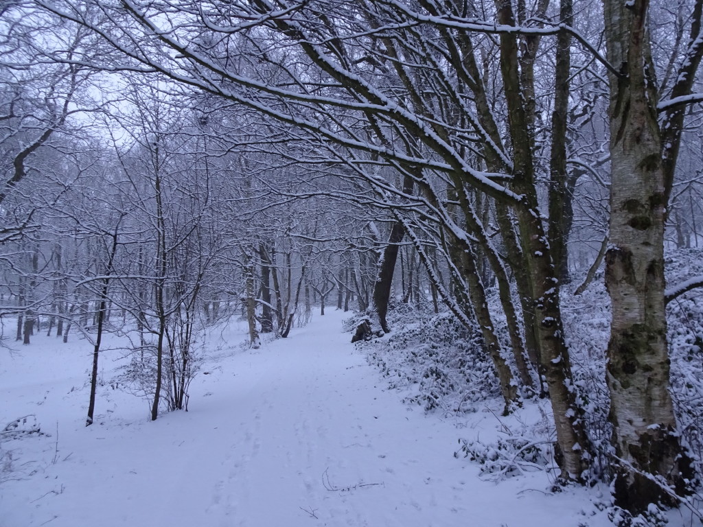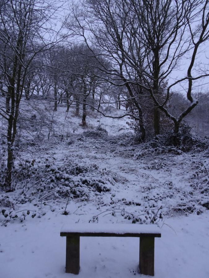 From the main car park we headed south and round to the old pumping station, the Barff was completely shrouded in a blanket of white snow, it is amazing how it transforms the landscape. As we walked past the pump house we ventured away from the main path and headed over towards the Bypass trail on the left, the snow was falling quite heavily making it quite unpleasant at times especially when the wind blew it under your jacket hood and you could feel the snow start to melt as it trickled down the side of your neck. Not much bird activity this morning, I heard the Greater Spotted Woodpeckers several times as I continued around the Barff, and watched several Grey Squirrels as they busily scratted at the ground to access their winter store of food. From the old farm I headed up the Barff and within a few minutes was standing on the top of Tap Hill, unfortunately such was the weather this morning that the view from the top was pretty poor, you could barely see the car park at the bottom. I was wondering what it was going to be like up here in a few hours’ time when the children are here with their sledges, daring to head off down the steep slope. No doubt on my rounds tomorrow morning there will be the usual debris left lying all over the place. We continued our walk off the top of the Barff, following what I call the middle path, of late this part of the walk has been quite muddy, especially the section just past the old Oak tree where the children swing on at every opportunity whilst on the Barff. Today the route was fine, the ground was quite firm underfoot which made quite a change, what was tricky though was the weight of snow on a lot of the young trees and bushes was weighing the branches down a lot more than usual and I was constantly having to duck to avoid getting another face full of snow. As the light improved there was a little more activity amongst our bird population with Chaffinch flitting from tree to tree, the white flashes on their tail feathers being quite distinctive in the gloomy morning light. It was nice to hear the shrill call of the Nuthatch too hoping to attract a mate, I could hear the tiny shrill calls of the Long tailed tits but unfortunately couldn’t see them this morning, I love the way these birds all cuddle up with each other whilst roosting on a branch, protecting themselves from the icy easterly winds and snow. Great Tits and Robins seemed to be following me on my walk this morning, the Robins especially, there always seemed to be one in front of me all the time.