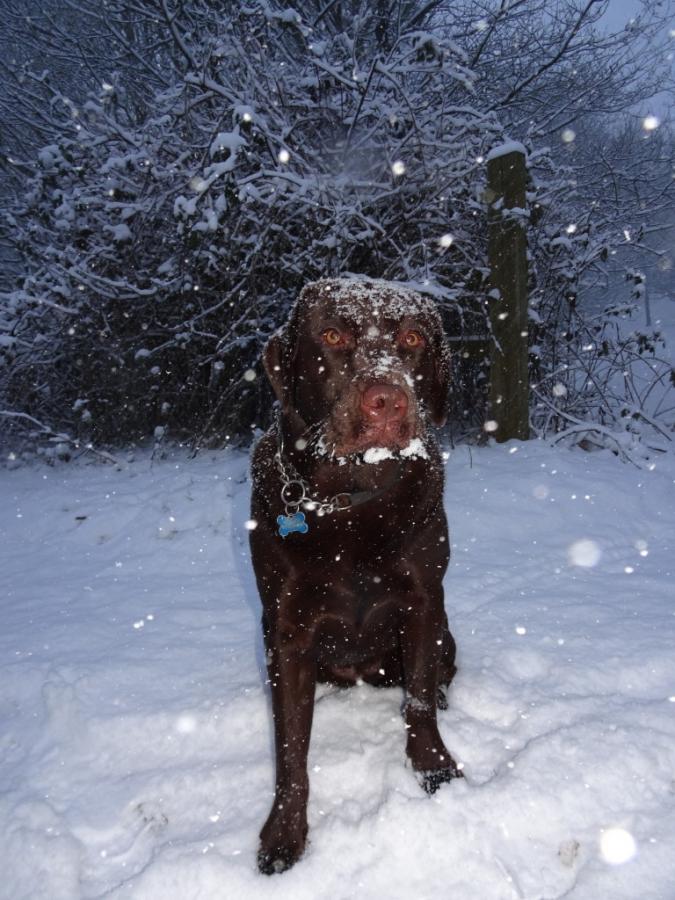 Meg and Gracie both thoroughly enjoy the snow, it is the first significant snowfall they have seen since they were born two years ago, Meg in particular likes running with her head on the ground, her nose acting as a snow plough until she gets that much snow up her nostrils she has to stop and have a sneeze to clear out her nasal tubes.