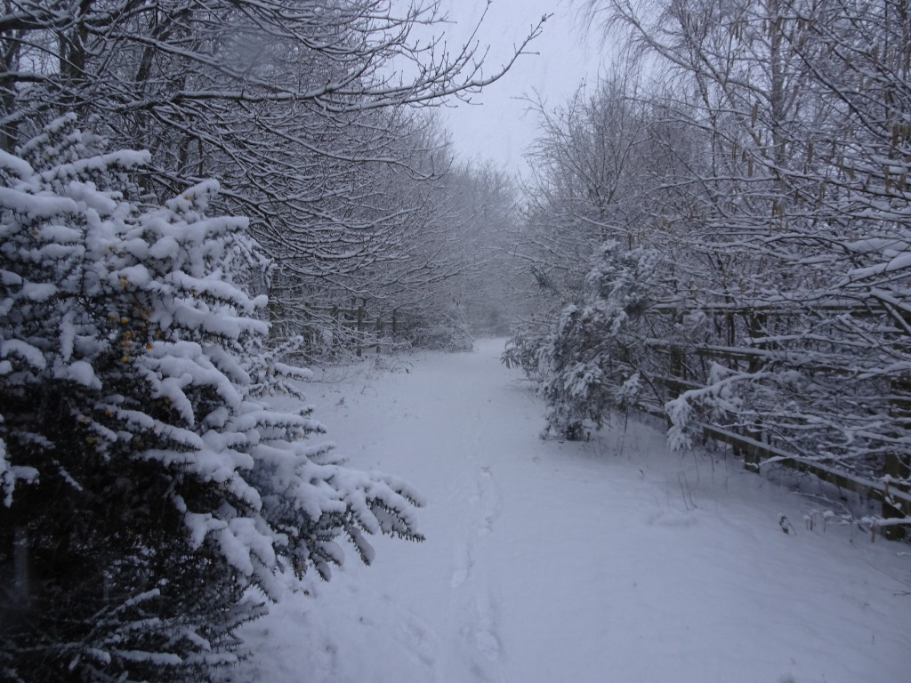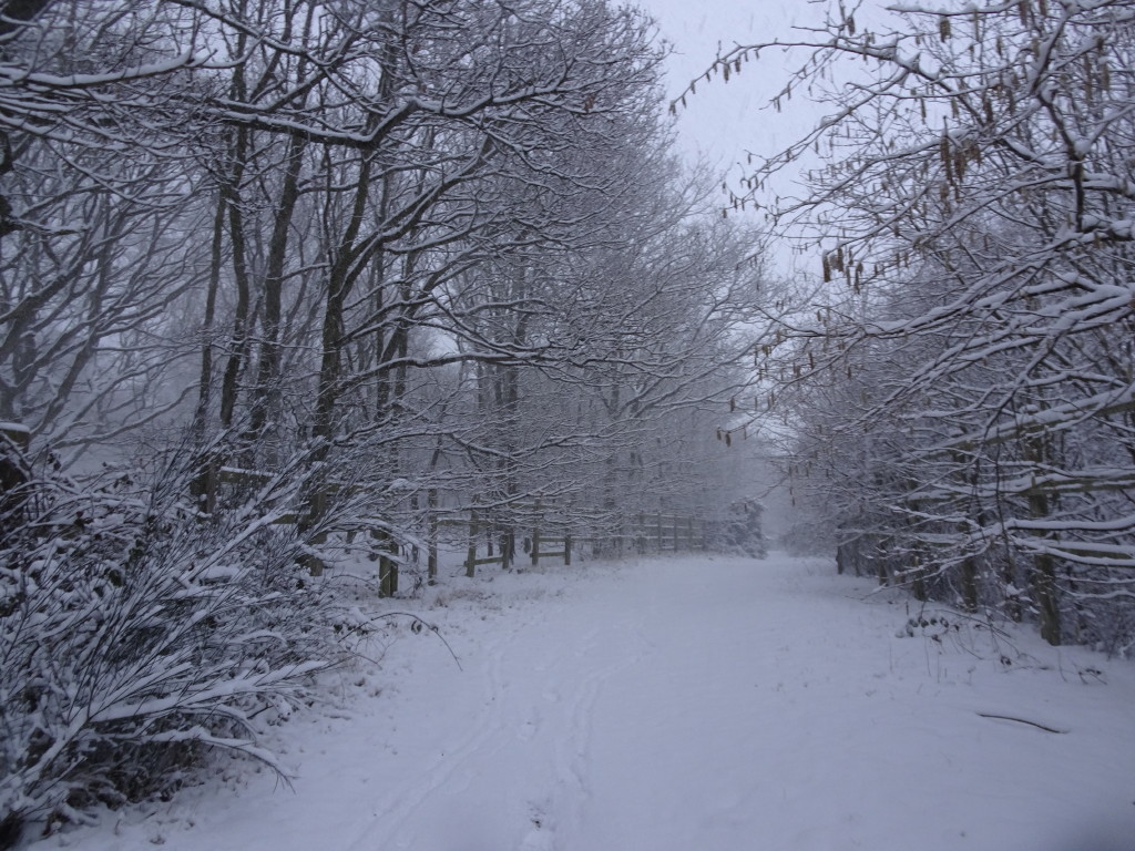 As I continued around the Barff I followed the path up to the Yorkshire Water work shop near the summit, following the fencing till I reached the summit of Tap Hill again, this time we followed the perimeter fence around the top, this is a route I only tend to walk in the summer as it gets really muddy, today though the mud had frozen and the covering of snow made a pleasant change to slipping and sliding all over the place. It is only a short ten – fifteen minute walk around the top arriving back on the Summit of Tap Hill for a final view looking over Selby below, unfortunately the visibility was still poor so it was just a picture of grey snow laden skies. From the summit it was a steady walk down the hill and back to the car for the short journey home.