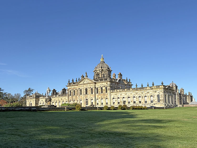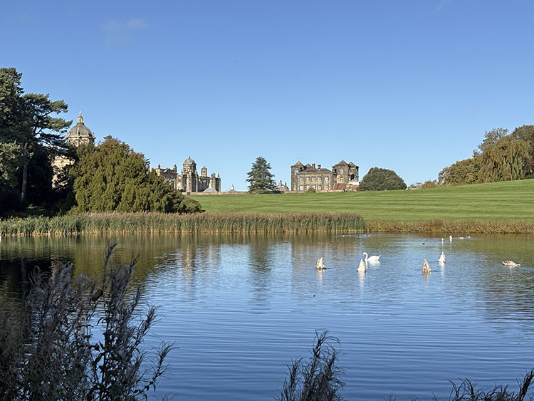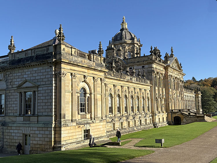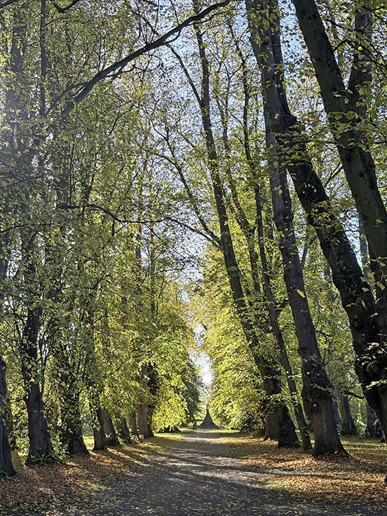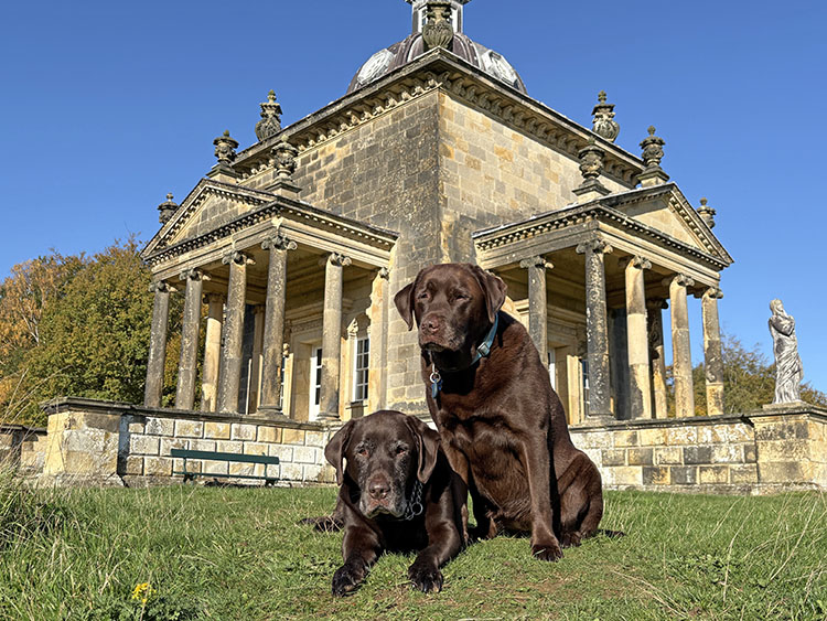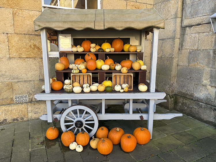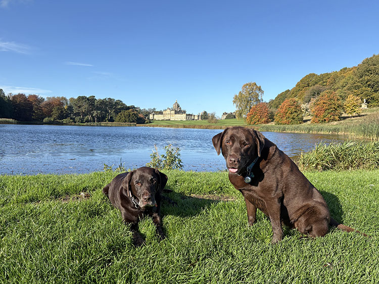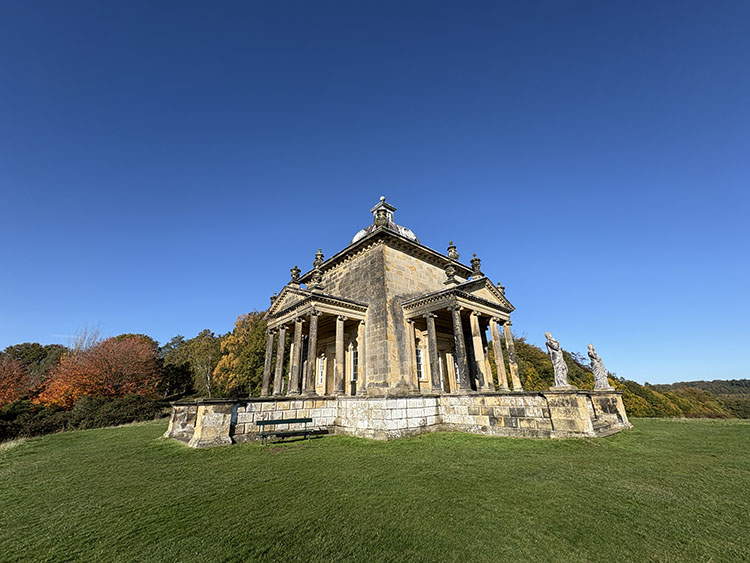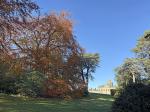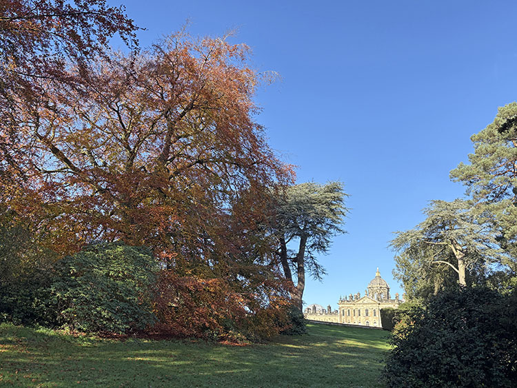 After a week of dull, gloomy, and unsettled weather the forecast for today looked quite bright, dry, and sunny. I had a free day so we packed the car and headed along the A64 to Castle Howard for a walk around the estate with Meg and Gracie and to see the autumn colours. I cannot believe it was virtually two months since our last visit so todays visit was long overdue. It is just a 50-minute drive from home and today journey was quite uneventful with light traffic on the roads. It was 10.15am as I got the dogs out of the car and headed into the Courtyard café for a takeaway coffee. The sun was shining and the sky was a beautiful deep blue with no clouds. As we made our way across the cobbled stone courtyard, there was a fine display of Pumpkins on a portable stall in the corner, several visitors were sat outside the Courtyard Café enjoying their refreshment in the autumnal sunshine. After passing through the ticket office, we headed back outside and along the Southern Terrace. The Northern Terrace was temporarily cordoned off whilst several forestry contractors were busily removing some fallen debris from one of the old oak trees which had succumbed to the strong winds over the past few days.