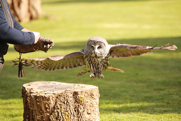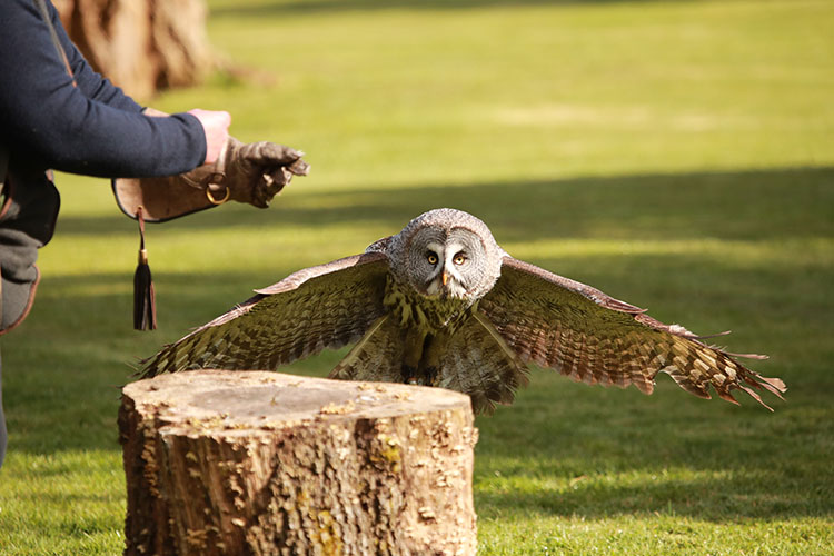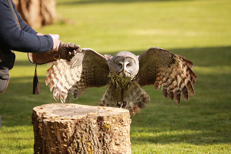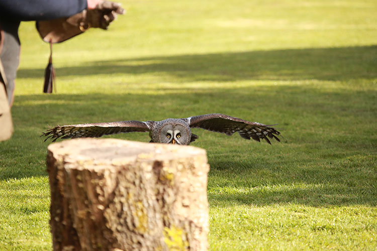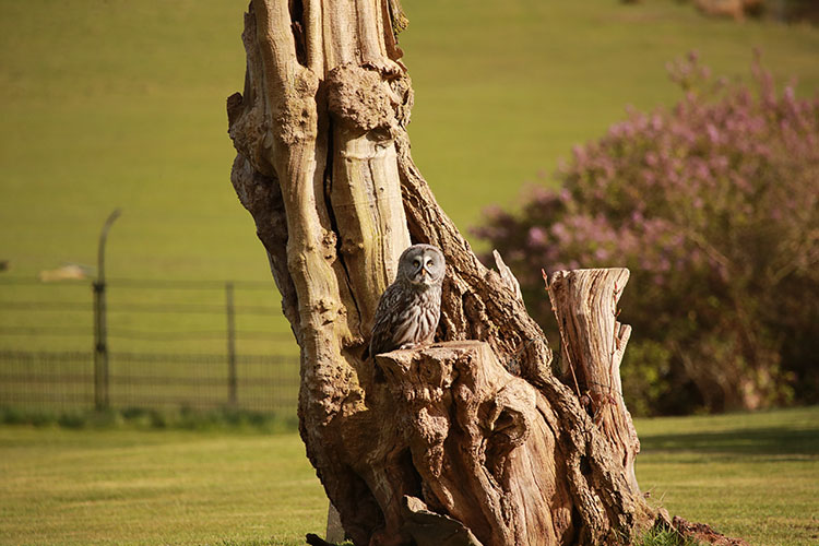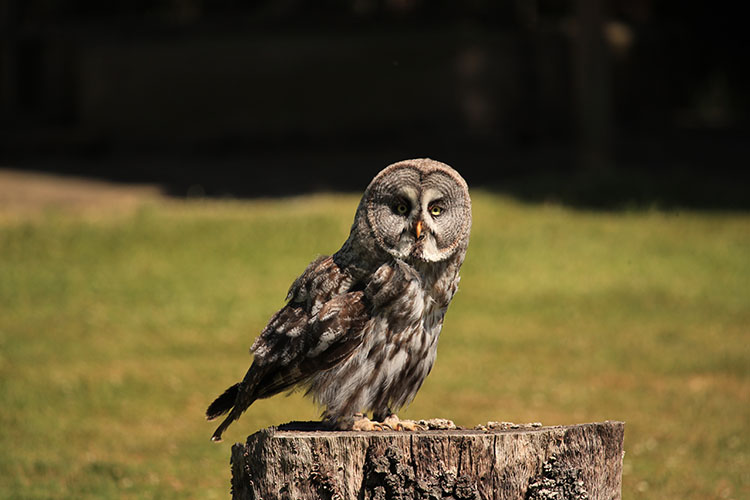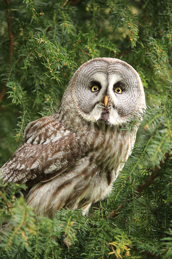 The Great Grey Owl pictured is a captive bird, filmed on the Swinton Estate in North Yorkshire. It is one of our tallest owls with a broad wingspan and a long tail. They are big headed owls with a large facial disk. They dwarf most other owls in size but not by weight, their bulk is mostly made of feathers. The females are larger than males.