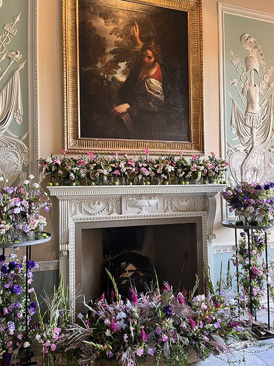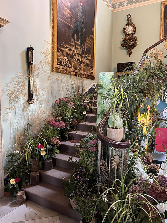 There were several beautiful displays of soft fruit and apples, some of the apple arrangements certainly caught my eye, close by were the growers, busily chatting away amongst themselves, probably comparing notes on their vegetables and how they got on in the competition. On leaving the giant vegetables behind, we headed back outside, crossed the Main Avenue and had a look at some of the stalls for a few minutes, after which we had a stroke with some Alpacas as you do, before heading into the giant Grand Floral Pavilion. Rows and rows of Dalias were on display, every colour and shape you could imagine, Yellow, Red, Orange, Pink, Lilac to name just a few. Lovely Bonsai and Alpine exhibitions, specialist plant nurseries, and floral displays filled this massive pavilion, there was always something that caught your eye. I think we went round it twice there was such a lot to see. After another light refreshment break, we headed back along the Main Avenue towards the main Hall, stopping at the wrought iron gates to admire the manicured lawn. Several of the ground floor rooms of Newby Hall were beautifully decorated with some amazing colourful floral displays. After a slow browse around the rooms and floral displays, we headed outside where a musician was playing his violin on the patio area, the acoustics filled the surrounding area, many people were sat around enjoying the sunshine and Prosecco whilst listening to the music. We continued down the stone steps, past the ornamental pond, to walk along the double Herbaceous border and at 172 metres in length there is plenty to see and admire. It is one of the longest borders in the country and has a North South axis. From the house the borders run down to the River Ure. The borders are full of colour texture and shape, with undulating drifts of colourful perennials, Echinacea, and Sanguisorba mingle with insect friendly Eryngium, Echinops and Veronicastrum. As we approached the river, we stopped to watch the Royal Scot Locomotive pass by on the ten and a quarter inch narrow gauge railway line. We continued our walk between the borders back up the gentle slope to the house, stopping for a few minutes to listen to the violinist playing in front of the house. On leaving the house we headed back along the Main Avenue to purchase some giant Allium bulbs and one or two other bits and pieces for the garden before we made our way back along the East Avenue to the car and journey home.
