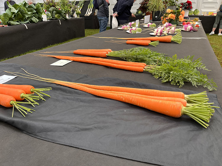 It is just a steady fifty-minute drive from home to Newby Hall which is situated on the outskirts of Ripon. We arrived at 9.15am, parked the car and made our way to the show entrance along the East Avenue, where after browsing some of the stalls we made our way to the refreshment area for a coffee and cake. It was a very pleasant morning, wet underfoot from yesterday’s rain, but the sun was shining, the weather forecast was good, and it was pleasantly warm. Suitably refreshed we headed over to the ‘Incredible Edible Pavilion’, it certainly lived up to its name, giant sized Cabbage’s, Onions, Cauliflowers, and Tomatoes, some of the later were so huge I couldn’t make out what they were, the Beetroot were the same, some the size of footballs. The Marrows were massive, so big that you could only fit one in a wheelbarrow. Then there were the Celery, Leeks, Onions and Carrots, some of the carrots were the length of the tables they were being displayed on, although looking good, I often wondered what they would taste like?