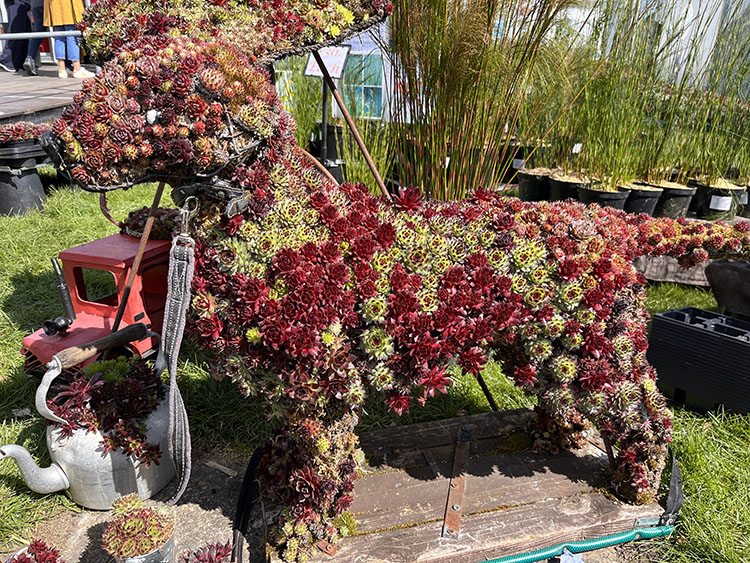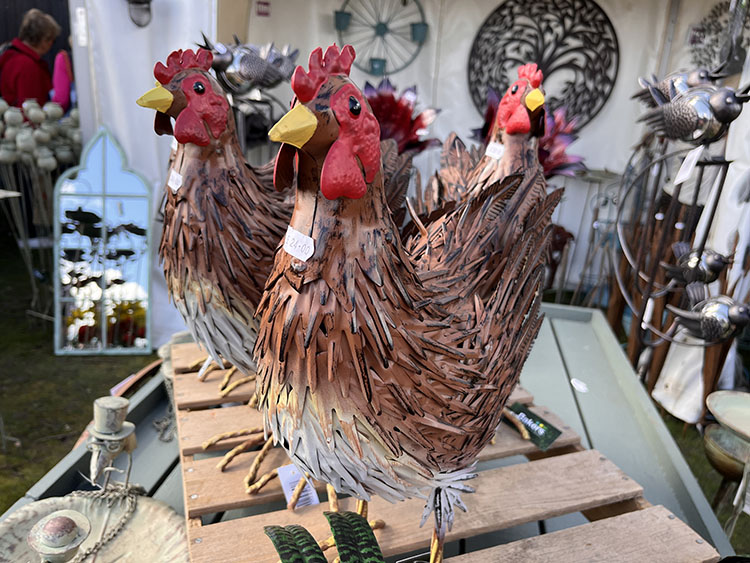 After leaving the main hall we ventured outside to browse at the trade stands lining the main avenue, it never ceases to amaze me the variety of items there are relating to gardening, everything from plants to Gazeboes, hot tubs, every kind of garden implement, statues, bird baths, bug houses, outdoor ornaments, wicker styled animals, the variety was endless.