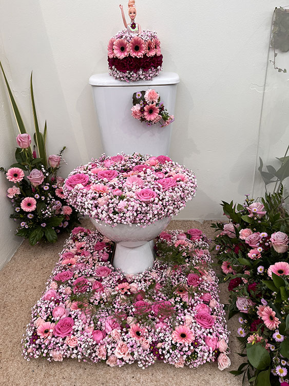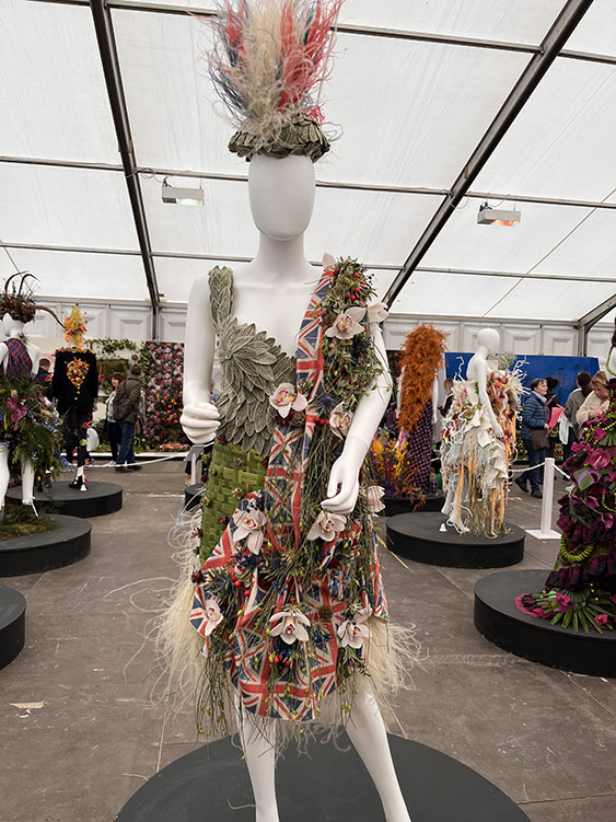 Fortunately, it was a nice, pleasant day, there was a cool breeze which kept the temperature down a little, but the sun was shining and it was dry, all in all a nice day for walking round the flower show. There were numerous talks/lectures being given in the main hall ranging from flower arranging to Bee Keeping and Cooking. We continued our walk round admiring all the trade stands, stopping for an ice cream whilst we sat and watched a musician playing a keyboard in the Bandstand. After several minutes we continued our walk around the showground, calling into the food hall and then into the exhibition hall with all the floral exhibits. Some of the displays were amazing creations, vibrant and colourful, there was an excellent display to celebrate the forthcoming Coronation. Another that caught my eye was a quirky displays of toilets and cisterns.