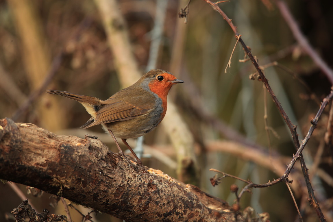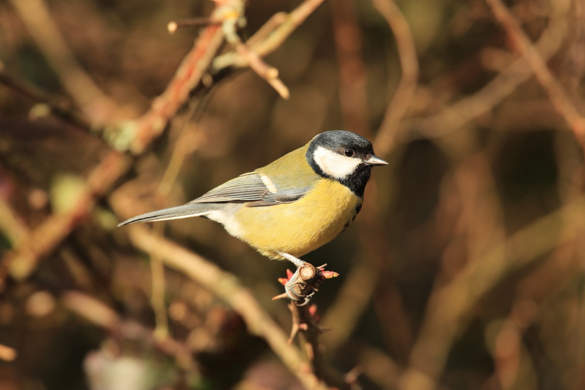 On the feeding station and amongst the bushes close to the hide were several Robins, I counted three in close proximity with each other, Dunnocks were regular visitors, several of them quite content to sit in the branches higher up and sing to their hearts content. The Great Tits were out and about in numbers too, the males especially looking particular colourful at the moment. Reed Buntings, male and female were popping in and out during the morning, the females a slightly lighter colour than their darker partners, but both looking good. I heard the Long Tailed Tits congregating in the bushes behind the hide for several minutes before the first one flew in for a feed on the fatballs, these are lovely looking birds. Suddenly the whole area around the feeders went quiet, all the feeding birds flew into the relative security of the undergrowth as a young Magpie flew onto one of the fence posts in front of the hide window, completely oblivious to me being only ten feet away, the bird fed for several minutes before flying off. I often see Magpies flying over and around the hide and across the lake but this was the first time I have seen one land in such close proximity to me. Normal business quickly resumed once the Magpie flew off, including visits from the Coal Tit and Willow Tit. As lunchtime approached I decided to call it a day and packed the gear away and headed back to the Visitors Centre for another coffee and the journey home. Another lovely day at the ings.