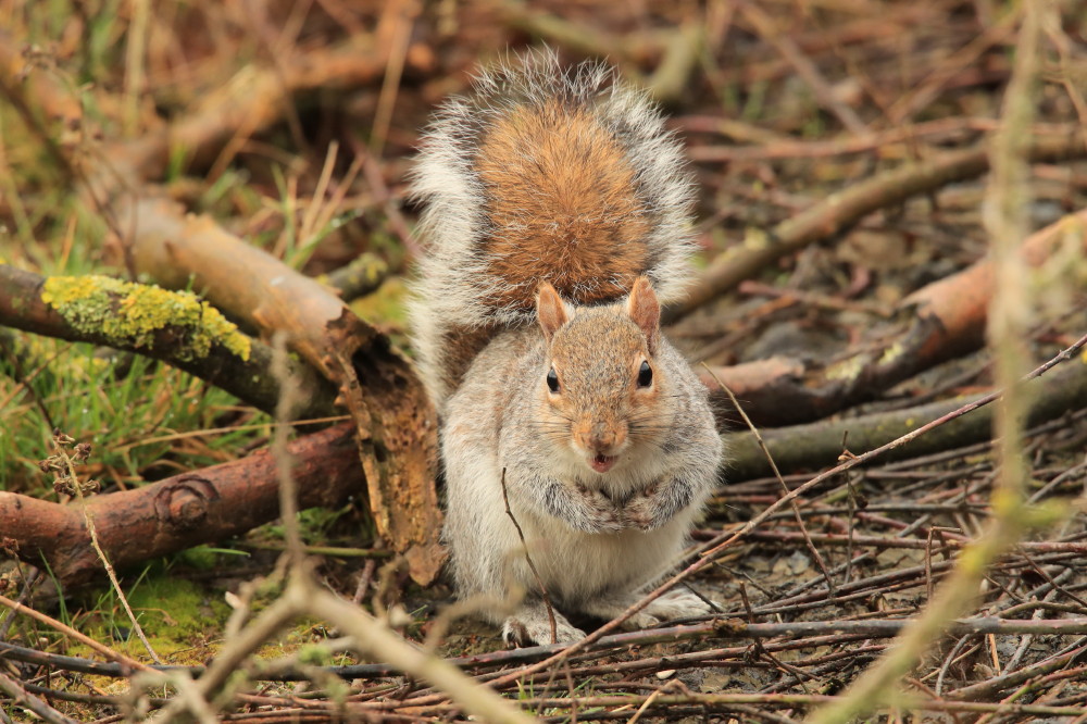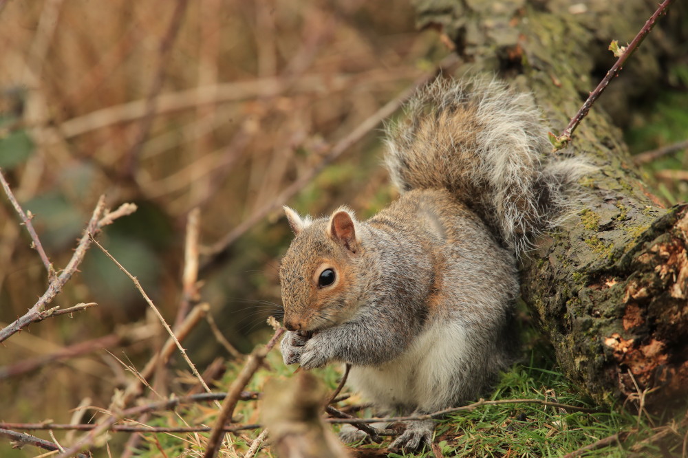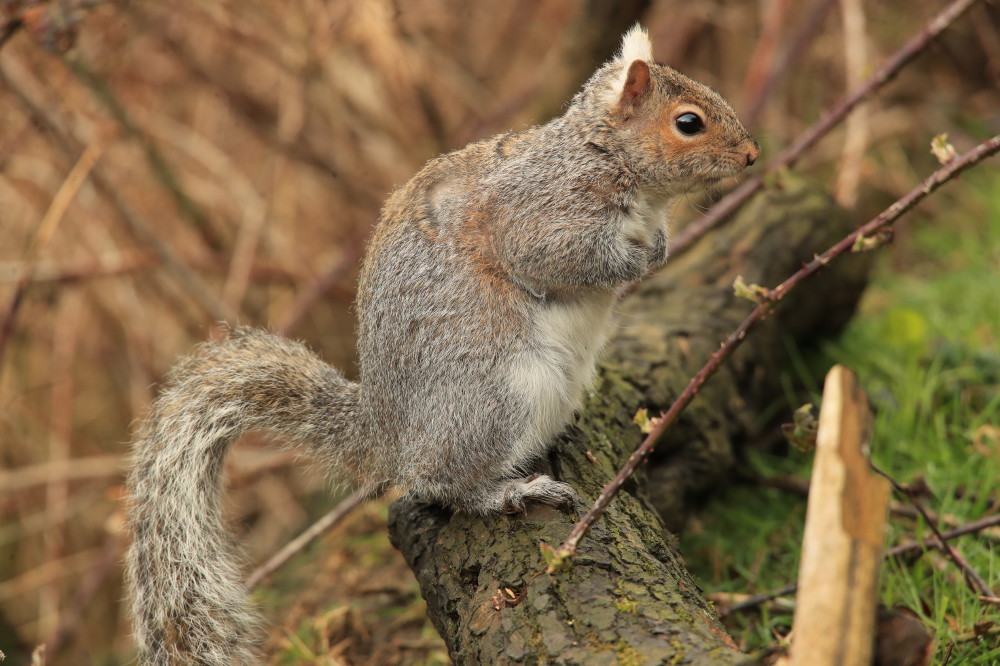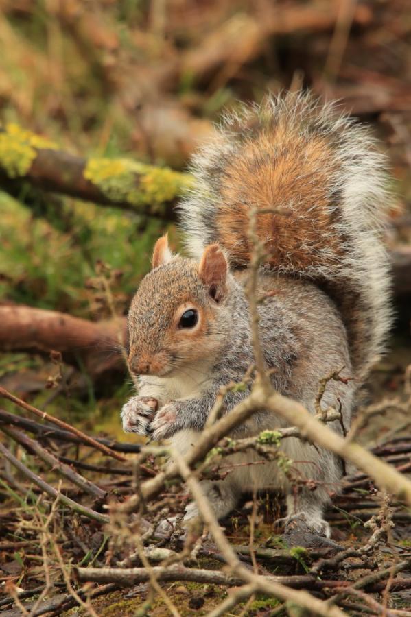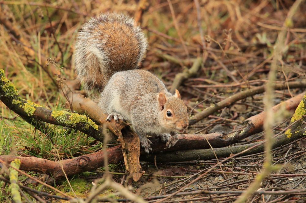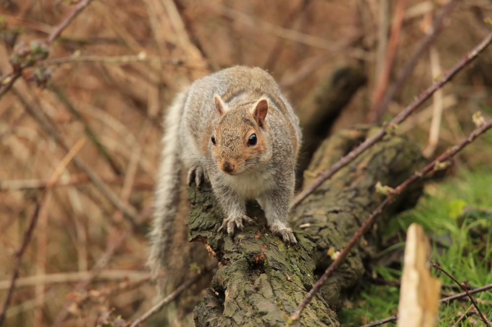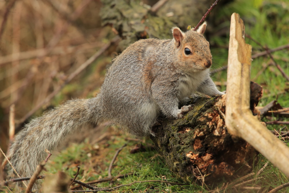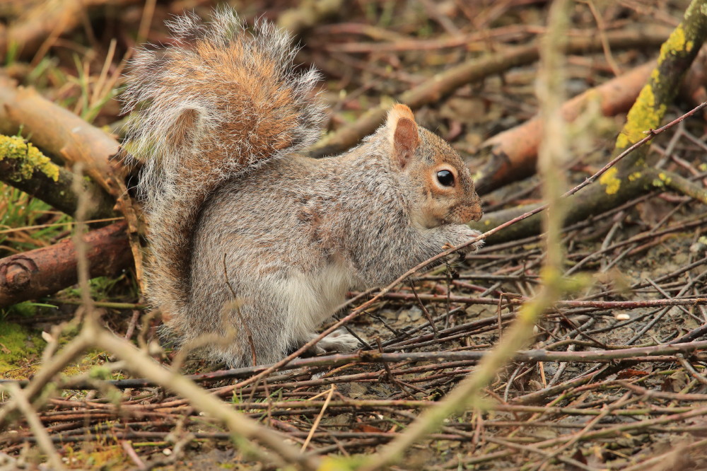 One of the most frequent visitors this morning was the Grey Squirrel, for most of the morning three of them were busily raiding the bird feeders.