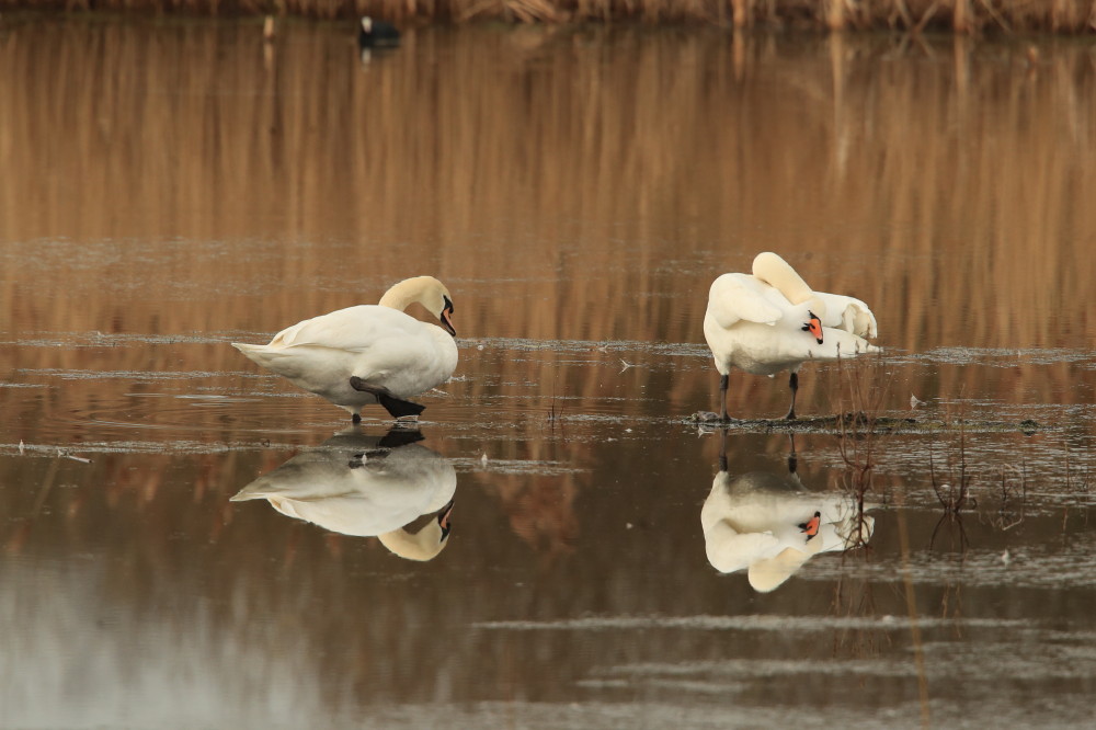 The lake was still partially frozen after the overnight frost, a pair of Mute swans were busily preening in the centre of the lake, a small flock of noisy Black headed Gulls were being a nuisance around the water’s edge, like a group of unruly teenagers, they were flying low over the Teal which were minding their own business, as well as a couple of Mallard and Coots and just generally being a nuisance. By mid-morning the whole group flew off towards the ‘Lin Dyke hide’ and things returned to normal on the lake.
