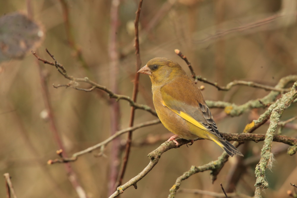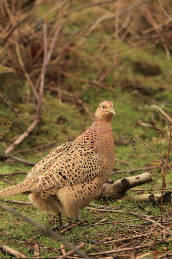 To the right of the hide were two pair of Mallard ducks busily hoovering up under the feeders, occasionally having a bit of a tussle with the Hen Pheasants after the same food. Of the smaller birds visiting this morning the Great Tit was the most frequent, followed by the Dunnock and Chaffinch. Several Greenfinch popped in for a feed, along with the Goldfinch who this morning preferred to feed off the floor, they certainly looked unsteady as they tried several times to land on the swinging feeders.