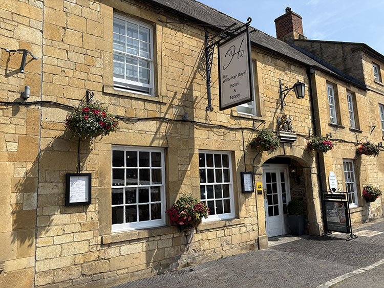 The White Hart Royal Hotel is located in the centre of this lovely small town, and much of its history has been well preserved inside the hotel including parts of the cobbled road, original oak beams, sloping floors and lots of information and photographs of King Charles 1 and his family.