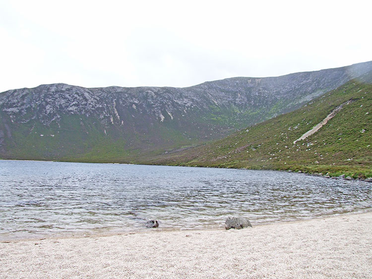 The walk starts in Thundergay where a wooden signpost shows the way and initially takes you past several cottages and over a large ladder stile over a deer fence. The trail runs alongside a small burn with several small waterfalls. I remember on one of my visits seeing several small Adders basking in the sunshine on the warm boulders on the side of the track and the white gravel track leading to the tarn. It is a pleasant gentle uphill ramble which takes about an hour from the car and an hour for the return total milage about three and a half miles.