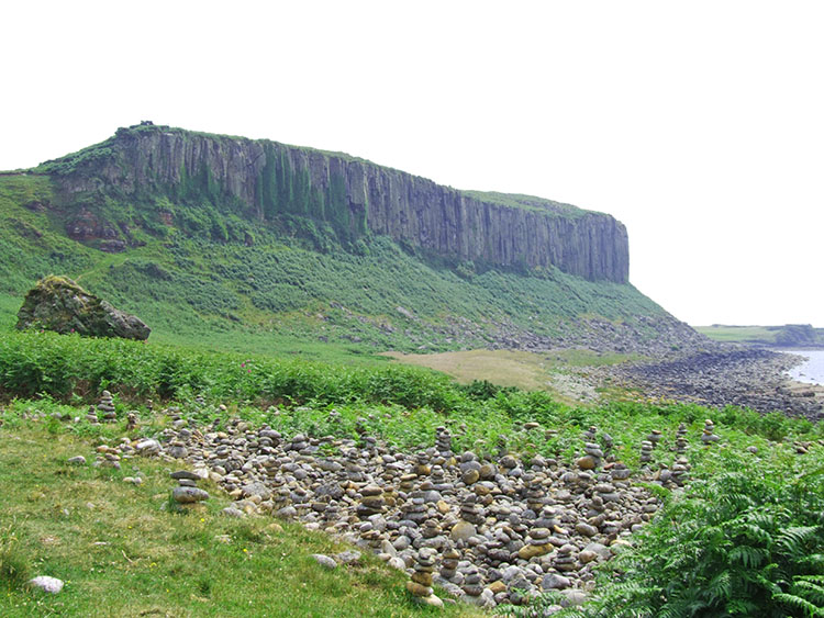 The Kings Caves are reached on foot from Blackwaterfoot, it is a pleasant 2 mile walk from the village. These caves are the largest of a series of seafront caves and are believed to have been a site of early Christian worship. The caves were formed around 10,000 to 6,000 years ago during an ice age. The current name of the cave is thought to originate from a tale that a Scottish king visited the caves. Legend also records that Robert the Bruce sought refuge in a cave on his journey to discover new lands, he is said to have been inspired by watching a spider's numerous and ultimately successful attempts to build a web.